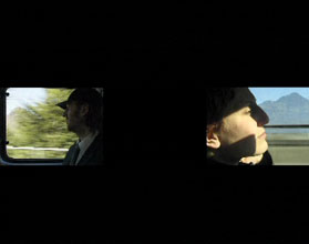 The formal structure of the work reiterates the theme of isolation and communication over distance. Zanni is always reconfiguring space in her work, reflecting on these isolations, associations and distances. A black gulf may divide the lone male and female figures or it may punctuate and shift their discourse to create counterpoint. Though framed in their own space by the different projection screens, they relate to each other in a temporal simultaneity, crossing paths through the creation of an effective montage that helps balancing and integrating these narrations. Towards the end as the three screens stitch together to create a panorama, the work briefly fabulizes itself as a cinemascope image. Re-imagining the empty landscape frame from Paris, Texas as an open ended terrain of identification, the viewer is pulled into the cinematic space as the male figure strides off into the distance.