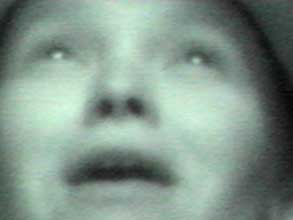 For several years Nick Stewart has been attending fireworks displays in London, with the primary objective of watching the crowd rather than the spectacle of the fireworks themselves. Stewart has been videoing people's faces, absorbed in themselves as they watch the fireworks, in extreme close-up, tightly framed, shot in low light levels using a mini DV camera set on 'infra-red', light sensitive recording. Each display provided a period of just a few minutes when the peak of explosions created the possibility of recording faces mesmerised by the sight. Only a single sequence of these upward gazing, explosively lit faces was included in the final work. The faces fill the entire frame. Each is marked by a succession of expressions of pleasure, awe, shock and disbelief, reactions to what happens off camera. A woman mouths the words 'oh wow' as she smiles skywards. A man looks heavenward in openmouthed amazement. Similar expressions must have registered on the face of St Paul when overwhelmed by a blinding flash on the road to Damascus. Another man's face is turned upwards in rapture, reminding one of those saints in Baroque paintings. The fact that Nick Stewart's video is projected on to a screen suspended from the ceiling encourages one to assume that his subjects are also seeing visions. The lights reflected in their eyes and flashing across their faces indicate a bright astral glow, but whether this is a sign of God's presence, of approaching space-ships or some other phenomenon remains unknown.