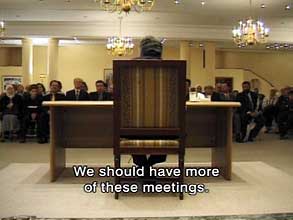 A personal enquiry into the acquisition, yielding, and centralizing of power (at the cost of those in the margin) and the close to mythical proportions of entrepreneur and multi-millionaire Lebanese Prime Minister Rafiq Hariri. Like a punch drunk fighter Amiralay weaves, feigns, retreats and attacks through a series of encounters throwing whatever he can at the Prime Minister who ducks and bobs while landing squarely in the ring of his inquisition. The two converse deftly bouncing off of each other, the videotape becomes a tango, then a punch-counter punch of introspection, speculation, and representation.