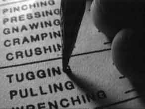 A quiet, almost detached narrator's voice relates the story of this underground movement, accompanied by seemingly ordinary images out of everyday life that take on a grimmer meaning due to the fact that not only are they in grainy black-and-white but are mostly shot in close-up and/or by an amateur's unstable hand, suggesting we are witnessing images that we were never meant to see but that were smuggled out of unknown territory.